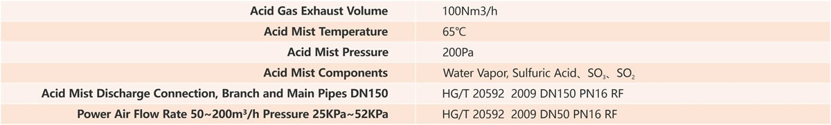 In the production process of sulfuric acid, the drying cycle tank and the secondary suction cycle tank are resolved in the cycle tank because of the saturated SO2 dissolved in the sulfuric acid. The concentration of sulfuric acid can be adjusted by adding water to the circulating tank. However, due to the intense reaction of water and acid, heat is released, which causes part of the water added to the circulating tank to evaporate into water vapor. Therefore, during the production process, the upper region of the acid circulation tank level will produce a mixture of resolved SO2, water vapor and acid fog. In the sulfuric acid production process, the drying cycle tank and the secondary suction cycle tank are resolved in the cycle tank because of the saturated SO2 dissolved in the sulfuric acid. The concentration of sulfuric acid can be adjusted by adding water to the circulating tank. However, due to the intense reaction of water and acid, heat is released, which causes part of the water added to the circulating tank to evaporate into water vapor. Thus, during the production process, a mixture of SO2 resolved, water vapor, and acid fog is produced in the upper region of the acid circulation tank level.