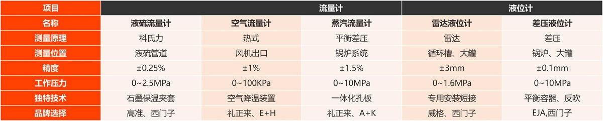 根據硫酸裝置工況特性,針對不同測量工況,選擇適合的測量儀表進行二次開發,以此解決當前硫酸裝置面臨的測量難題。專用測量儀表適用于液體硫磺、風機出口、過熱蒸汽、硫酸等流量計;鍋爐、循環酸槽、液硫大罐等液位計。