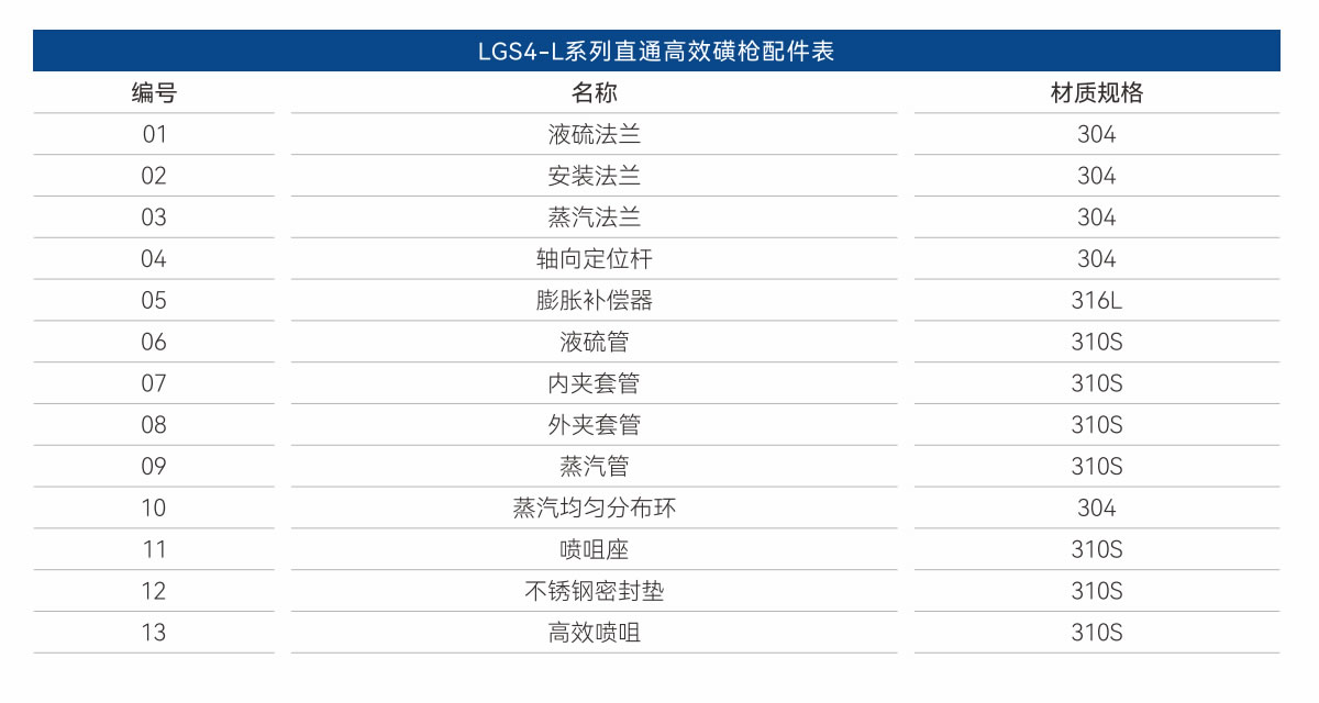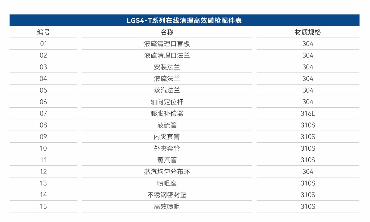 鑒于磺槍對裝置的重要性,禮正來科技持續專注磺槍的研發,結合其運行的惡劣工況,解決當前磺槍面臨的霧化、彎曲、堵塞、泄漏、等關鍵問題。我們自主研發的LGS4系列高效磺槍,作為禮正來科技的第四代高性能磺槍,采用了四項核心技術:實心錐霧化分層燃燒技術、槍身均溫技術、直通流通增速技術、高徑承壓對焊技術,有效解決了磺槍的霧化、彎曲、堵塞、泄漏問題。這確保了裝置在長期運行周期內,不會因磺槍故障而停車,從而避免了因磺槍故障給企業帶來的經濟損失。