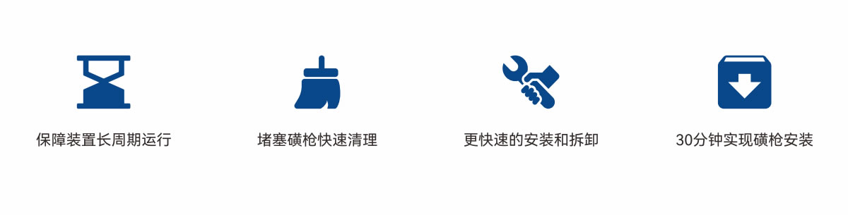 磺槍在裝置上屬于核心設備,其使用周期應滿足裝置計劃運行周期。由于液硫管線或儲存罐區因為使用碳鋼材料,會有腐蝕的硫化鐵落入到液硫中,輸送到磺槍中導致磺槍在運行中被堵塞,引發裝置停車或減產,高效磺槍噴咀采用大流道直通技術(流通面積376mm)并配備了防堵錐,可有效通過硫化鐵不會被堵塞。可滿足高效磺槍在運行周期內使用。高效噴咀采用超低含鐵合金耐磨合金制造,可有效解決噴咀在高溫下隔絕鐵與硫反應生成硫化鐵出現腐蝕,使噴咀更經久耐用。