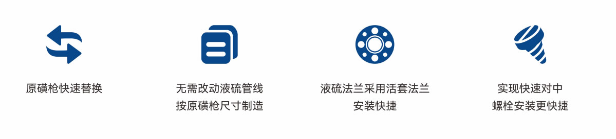 高效貓槍采用分層燃燒技術,避免了焚硫爐爐膛溫度超過1150°C,從而有效保障了裝置的安全穩定運行高效磺槍支持在線更換功能,有助于用戶實現設備的長期穩定運行。