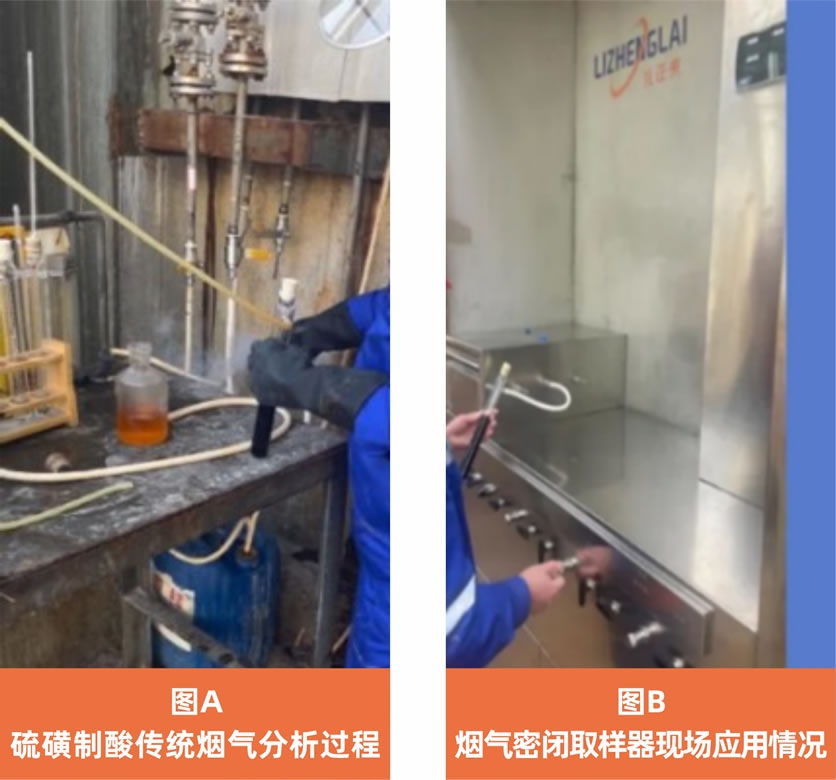 如圖A所示,傳統(tǒng)的煙氣分析流程缺乏精確可控的流量和壓力條件,這通常導(dǎo)致分析人員無法獲得準(zhǔn)確的分析結(jié)果,并且存在大量酸性有毒氣體的泄漏問題,這對(duì)分析人員的健康構(gòu)成了嚴(yán)重威脅。相比之下,圖B展示了LQ煙氣密閉取樣器如何徹底解決硫酸裝置煙氣分析過程中氣體無組織泄漏的問題。據(jù)估計(jì),該裝置在使用過程中能夠減少一套硫酸裝置全年分段轉(zhuǎn)化率分析時(shí)向環(huán)境排放的酸性有毒氣體約2800立方米,相當(dāng)于1.4噸硫酸/年。因此,該設(shè)備的運(yùn)用將有效解決傳統(tǒng)煙氣分析流程中大量酸性有毒氣體泄漏、取樣管線堵塞以及環(huán)境污染等問題。LQ煙氣密閉取樣器專為轉(zhuǎn)化率分析設(shè)計(jì),集成了取樣管線酸性有毒氣體回收、防堵管路、分析流量控制和精密調(diào)節(jié)功能,能夠縮短分析時(shí)間并減輕分析人員的工作負(fù)擔(dān)。此外,該取樣器還采用了分析流量精密調(diào)節(jié)技術(shù),為分析人員提供了精確可控的流量,以確保獲得準(zhǔn)確的測(cè)量結(jié)果,從而將總體分析效率提升約50%。