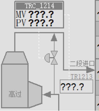 我們為每個位號獨立設計顯示框,將數據置于框內,位號名稱置于框外,形成清晰的信息層次。在此設計基礎上,將PID控制進行展示,設計重點視覺效果,在閥門旁增添其輸出值及反饋值,并通過連接至控制點位號進行顯示。