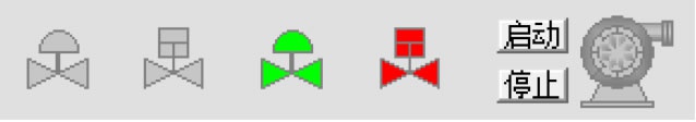 對于閥門和電機,我們使用填充色表示開關和啟停狀態,并通過其顏色變化,綠色、紅色表示其開關、啟停狀態。