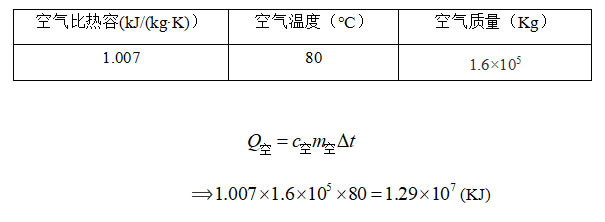 采用熱量公式計算空氣的總熱量Q=cm△t,查表可得空氣的比熱容。(溫度計為80℃,忽略壓力變化)