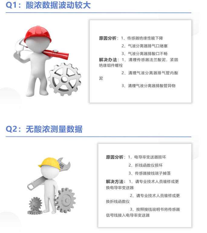 (1)正常運行時觀察傳感器法蘭連接處是否有酸泥產(chǎn)生,排氣管是否正常;