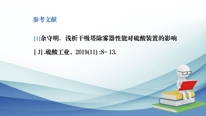 對于溶劑吸收原理的尾吸塔,二吸塔除霧器帶酸會造成溶劑中硫酸鹽含量增加,從而導致尾吸塔的吸收劑消耗量增大。目前硫酸尾氣離子液吸收塔的最新設計是塔前塔后均配置電除霧器,塔前配置電除霧器的目的是降低溶劑的消耗,塔后配置電除霧器的目的是確保酸霧達標排放。【1】